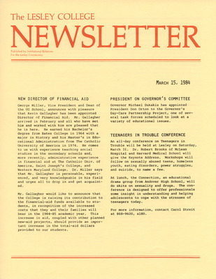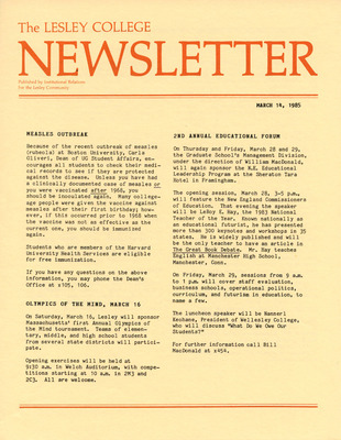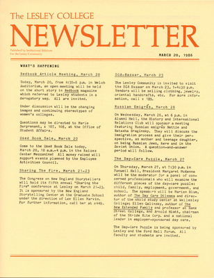 The Lesley College Newsletter (March 20, 1986)