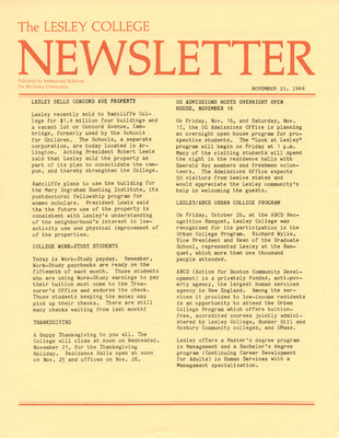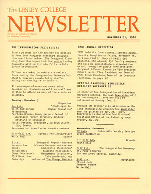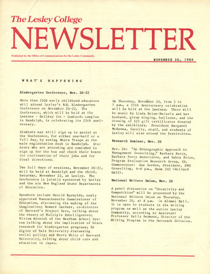 The Lesley College Newsletter (November 20, 1986)