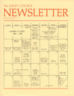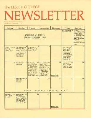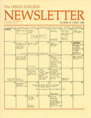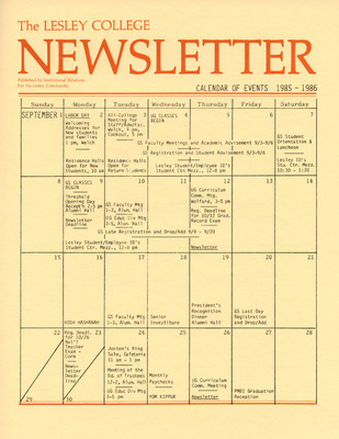 The Lesley College Newsletter Calender of Events (1986)