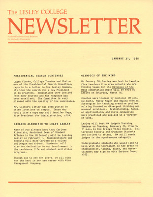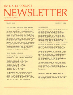 The Lesley College Newsletter (January 23, 1986)