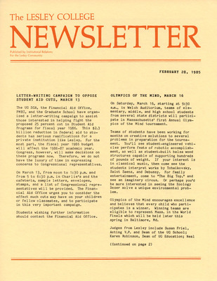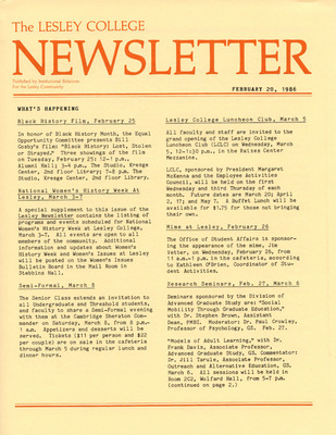 The Lesley College Newsletter (February 20,1986)