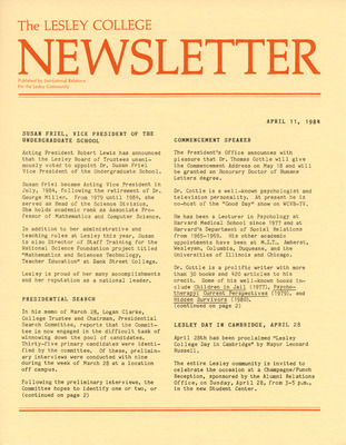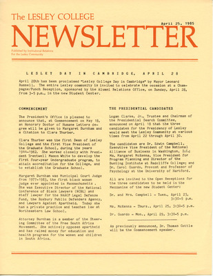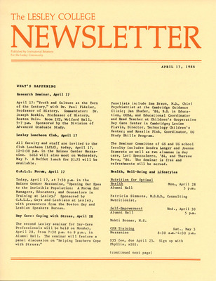 The Lesley College Newsletter (April 17, 1986)