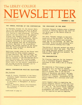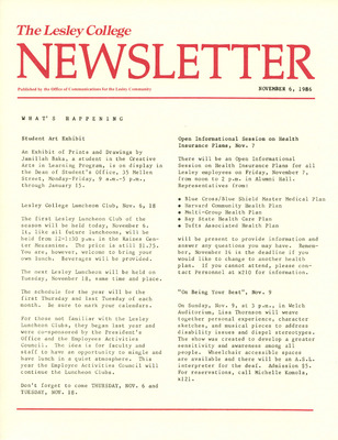 The Lesley College Newsletter (November 11, 1986)