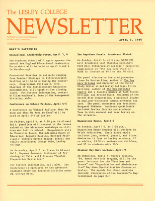The Lesley College Newsletter (April 3, 1986)
