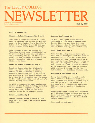 The Lesley College Newsletter (May 1, 1986)