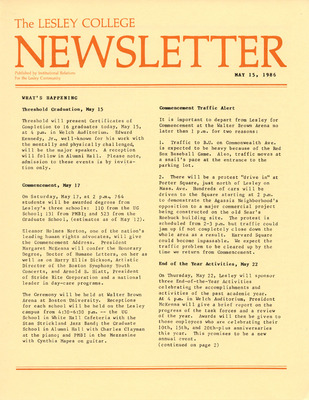 The Lesley College Newsletter (May 15, 1986)