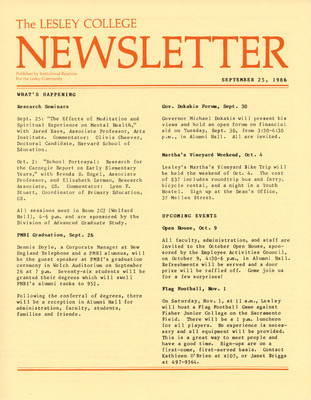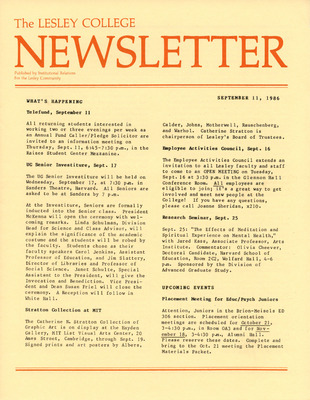The Lesley College Newsletter (September 11, 1986)