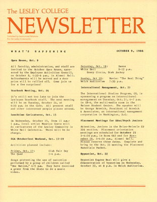 The Lesley College Newsletter (October 9, 1986)