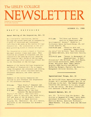 The Lesley College Newsletter (October 23, 1986)
