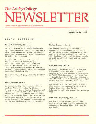 The Lesley College Newsletter (December 4, 1986)