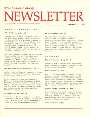 The Lesley College Newsletter (January 22, 1987)