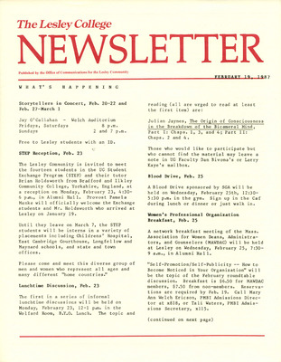 The Lesley College Newsletter (February 19, 1987)