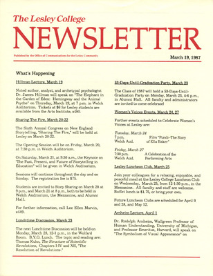 The Lesley College Newsletter (March 19, 1987)