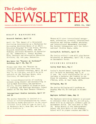 The Lesley College Newsletter (April 16, 1987)