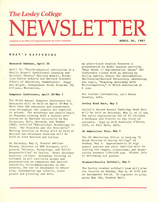 The Lesley College Newsletter (April 30, 1987)