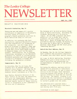 The Lesley College Newsletter (May 14, 1987)